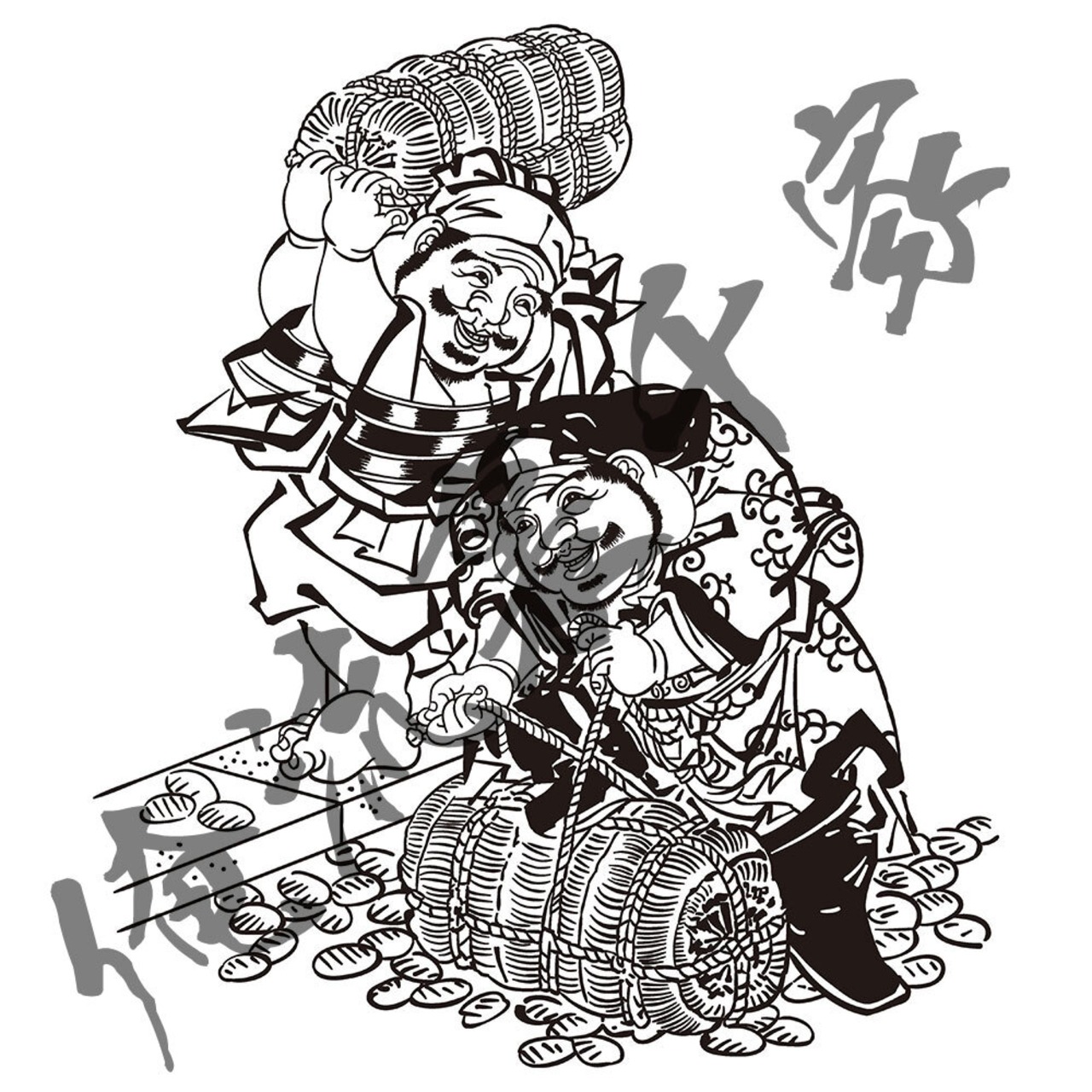 ukiyoe-0005 七福神の中の恵比寿(えびす)と大黒天(だいこくてん)
